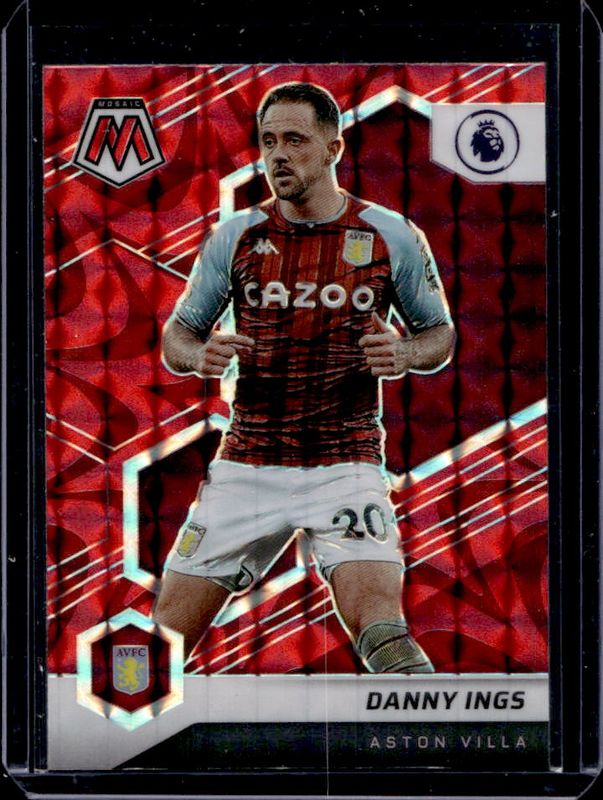 The Danny Ings 2021 Mosaic Premier League #122 Reactive Red card is 1 of 39 Danny Ings' card variations in the 2021 Mosaic Premier League set being tracked by Sports Card Investor, including Base, Blue Pulsar, Choice Peacock, Choice Red & Green, and Genesis.
