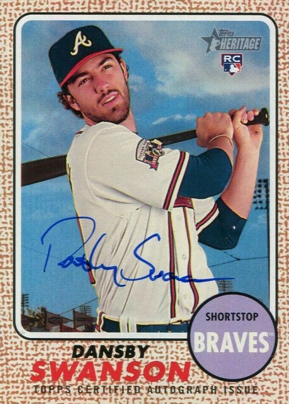 This card is 1 of 2 Dansby Swanson's card variations in the 2017 Topps Heritage set being tracked by Sports Card Investor, including Real One Autographs - Red Ink /68 (Swinging Bat).