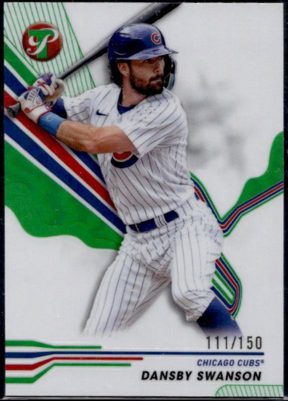 The Dansby Swanson 2024 Topps Pristine #96 Green Refractor /150 card is 1 of 24 Dansby Swanson's card variations in the 2024 Topps Pristine set being tracked by Sports Card Investor, including Base, Pristine Refractor, Refractor, Pristine Purple Refractor /99, and Purple Refractor /99.