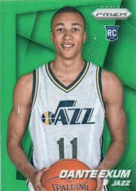 The Dante Exum 2014 Prizm #255 Green Rookie card is 1 of 42 Dante Exum's card variations in the 2014 Prizm set being tracked by Sports Card Investor, including Base, Blue Green Mosaic, Blue Mojo, Blue Wave, and Photo Variation.