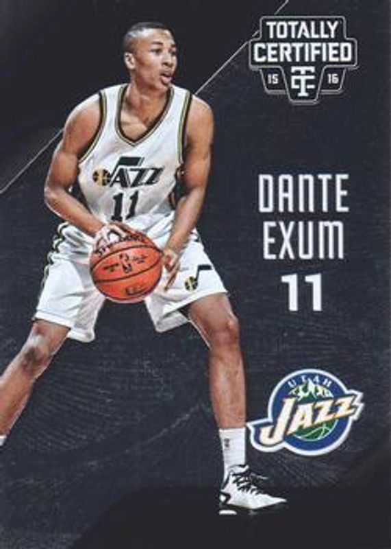 The Dante Exum 2015 Totally Certified #130 Base card is 1 of 18 Dante Exum's card variations in the 2015 Totally Certified set being tracked by Sports Card Investor, including Mirror Red /149, Mirror Blue /99, Mirror Purple /50, Mirror Camo /25, and Mirror Gold /10.