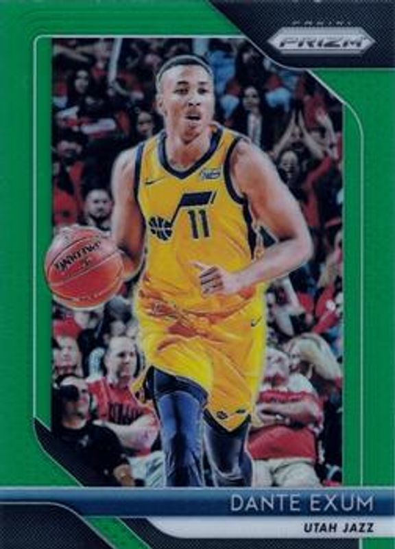 The Dante Exum 2018 Prizm #163 Green card is 1 of 23 Dante Exum's card variations in the 2018 Prizm set being tracked by Sports Card Investor, including Choice Blue Yellow Green, Fast Break, Red Ice, Ruby Wave, and Fast Break Blue /175.
