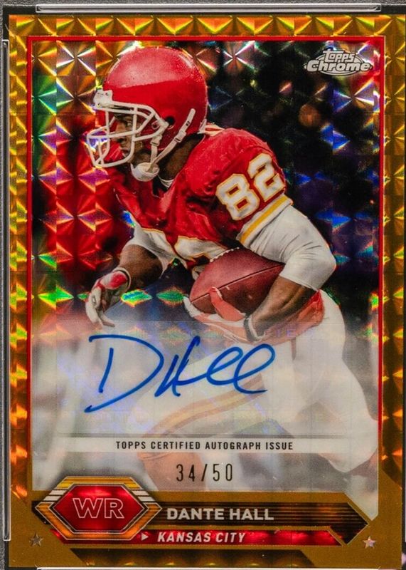 Dante Hall 2023 Topps Composite #TCA-DHAL Chrome Autographs - Geometric Gold /50 PSA 7 Price Guide