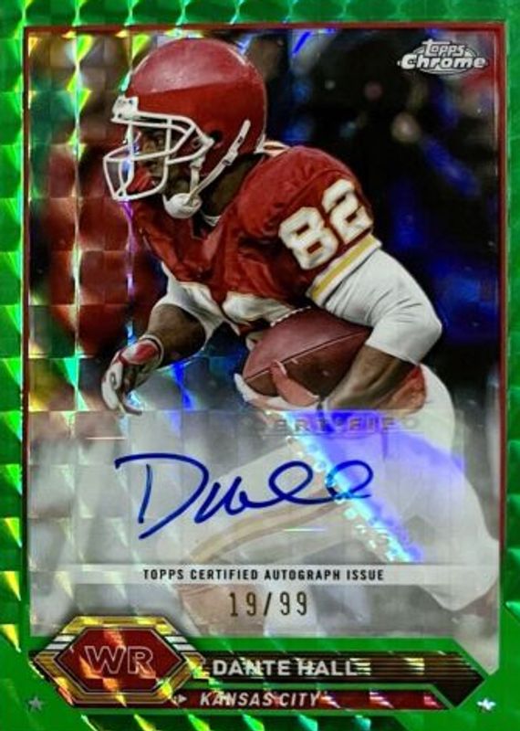 Best Prices Available For Sale of Dante Hall 2023 Topps Composite #TCA-DHAL Chrome Autographs - Geometric Green /99