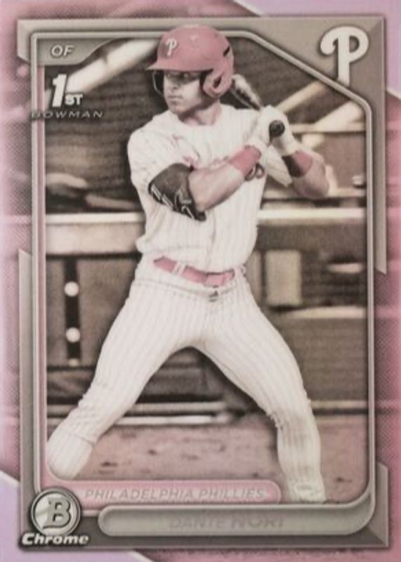 The Dante Nori 2024 Bowman Draft #BDC-16 Chrome - Pearl Refractor (1st) card in Raw condition has not changed in price in the last 30 days and was last sold for $67.88 .