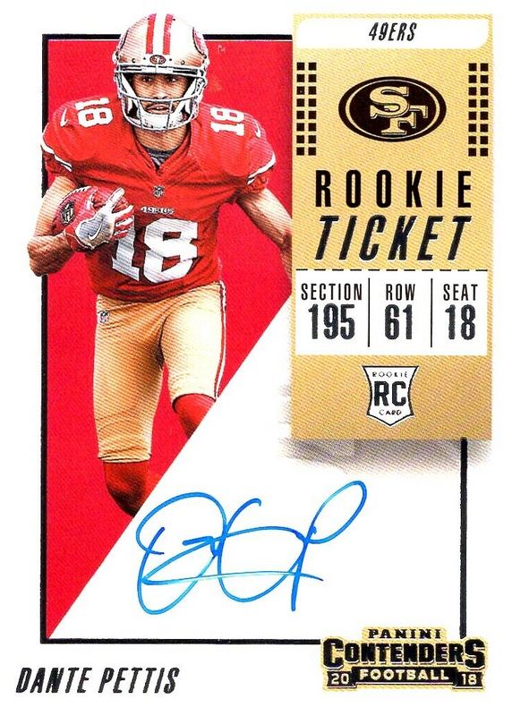 DANTE PETTIS 🏈 2018 Panini Contenders #118 Rookie Ticket RC AUTO 49ERS A274