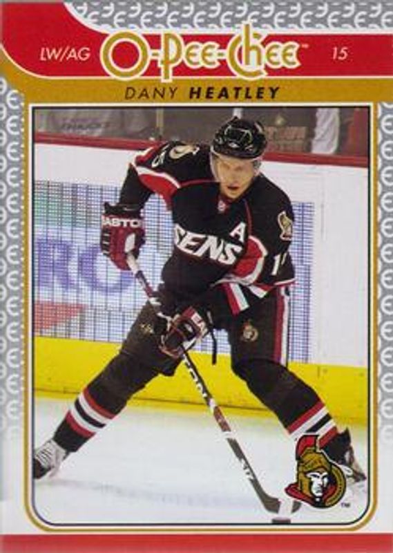 The Dany Heatley 2009 O-Pee-Chee #356 Base card is 1 of 10 Dany Heatley's card variations in the 2009 O-Pee-Chee set being tracked by Sports Card Investor, including #667 Base, #667 Rainbow, #356 Rainbow, #356 Retro, and #356 Retro Blank Back.