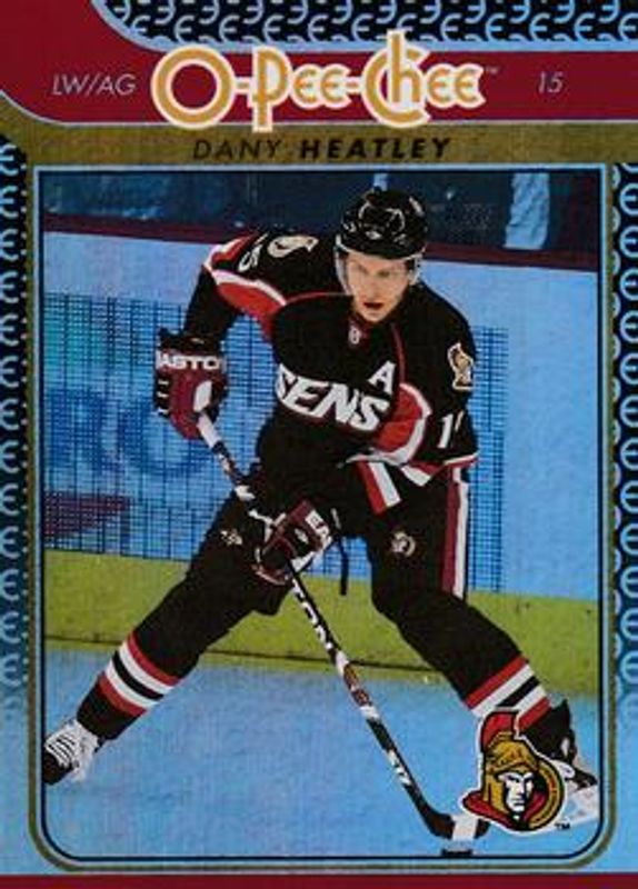 The Dany Heatley 2009 O-Pee-Chee #356 Rainbow card is 1 of 10 Dany Heatley's card variations in the 2009 O-Pee-Chee set being tracked by Sports Card Investor, including #667 Base, #356 Base, #667 Rainbow, #356 Retro, and #356 Retro Blank Back.