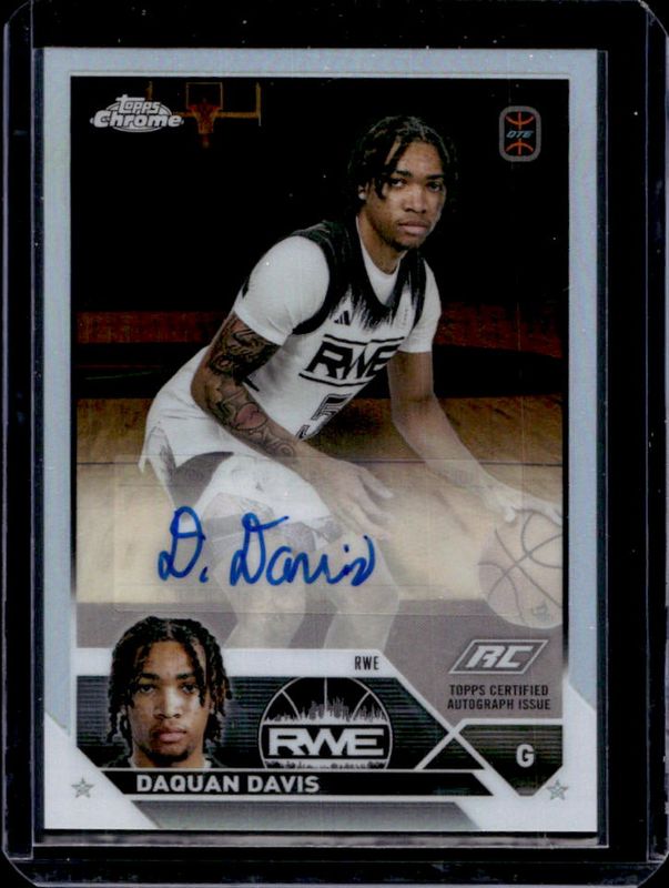 The Daquan Davis 2023 Topps Chrome OTE Overtime Elite #A-DDA Autographs card is 1 of 146 Daquan Davis' card variations in the 2023 Topps Chrome OTE Overtime Elite set being tracked by Sports Card Investor, including #99 Base, #24 Base, #55 Base, #86 Base, and #24 OTE Refractor.