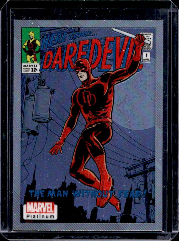 The Daredevil 2023 Upper Deck Marvel Platinum #WI96 Cover Variant - Rainbow card is 1 of 90 Daredevil's card variations in the 2023 Upper Deck Marvel Platinum set being tracked by Sports Card Investor, including #114 Base, #96 Base, #114 Black Rainbow, #96 Black Rainbow, and #96 Blue Rainbow.