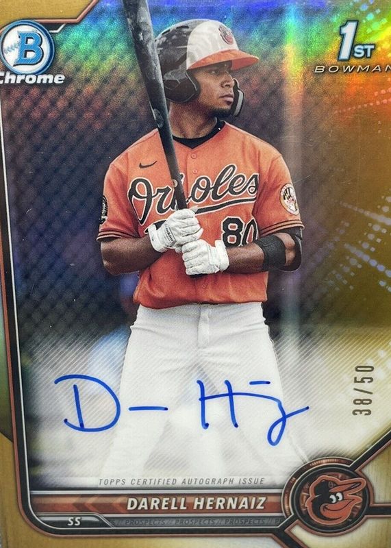 Best Prices Available For Sale of Darell Hernaiz 2022 Bowman #CPA-DHZ Chrome Prospect Auto - Gold Refractor /50 (1st)