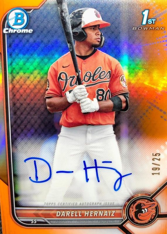 Best Prices Available For Sale of Darell Hernaiz 2022 Bowman #CPA-DHZ Chrome Prospect Auto - Orange Refractor /25 (1st)