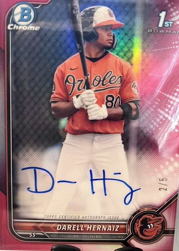 Darell Hernaiz 2022 Bowman #CPA-DHZ Chrome Prospect Auto - Red Refractor /5 (1st) RAW Price Guide