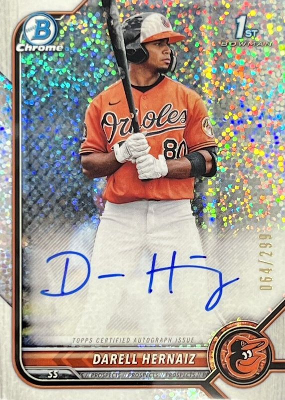 Best Prices Available For Sale of Darell Hernaiz 2022 Bowman #CPA-DHZ Chrome Prospect Auto - Speckle Refractor /299 (1st)