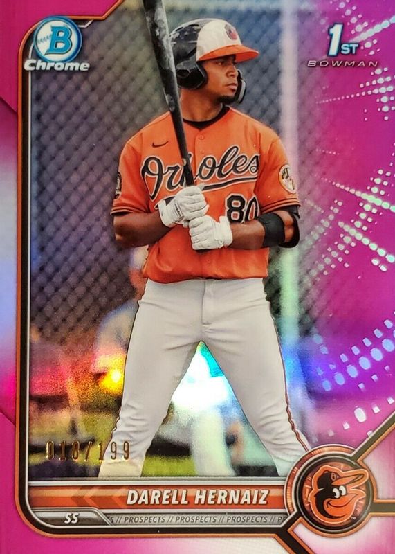 2022 Bowman Darell Hernaiz Pink Fuchsia Refractor 1st Chrome /199 BCP-27 Orioles