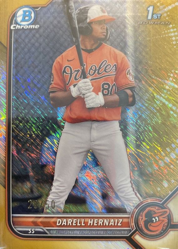 2022 Bowman Chrome Gold Shimmer Darell Hernaiz Orioles #BCP-27 /50