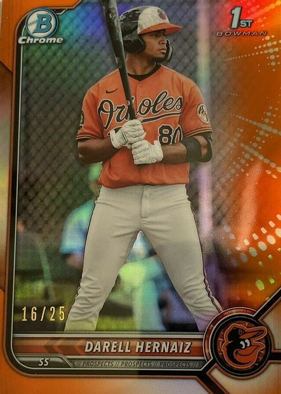 2022 bowman 1st. Chrome Darell Hernaiz parallel orange shimmer 16/25