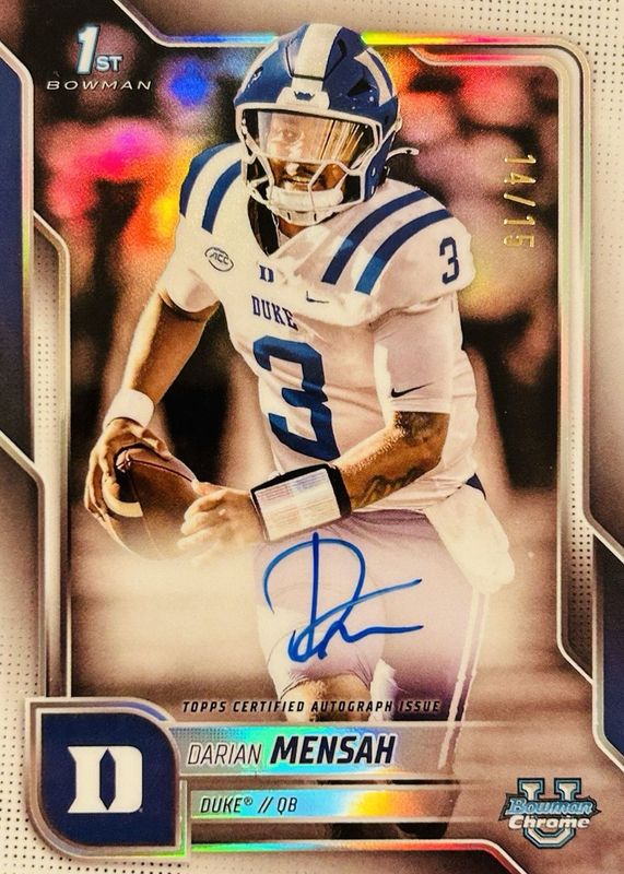 Darian Mensah 2025 Bowman Chrome University #BCA-DM Prospect Auto - White Refractor /15 (1st) RAW Price Guide