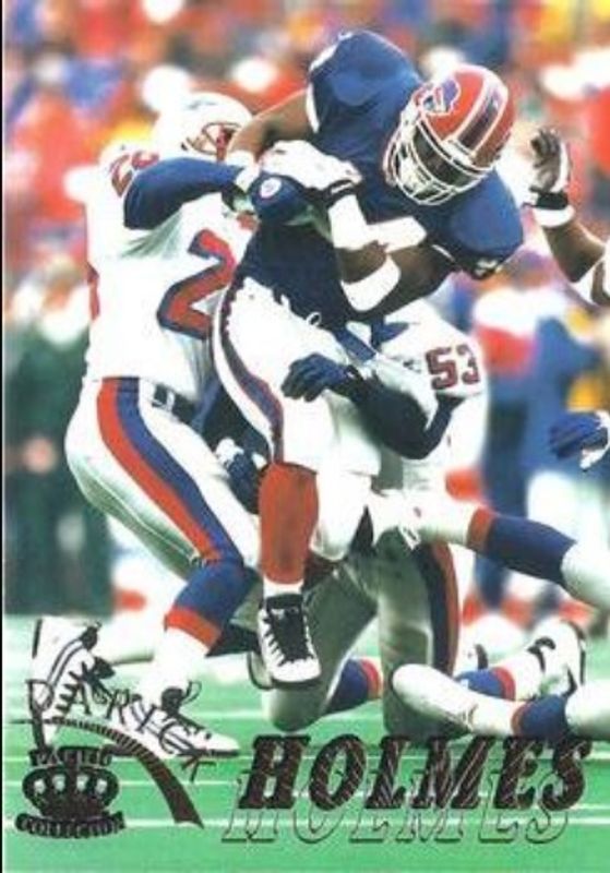 The Darick Holmes 1996 Pacific Gridiron #11 Gold card is 1 of 5 Darick Holmes' card variations in the 1996 Pacific Gridiron set being tracked by Sports Card Investor, including Base, Copper, Platinum, and Red.