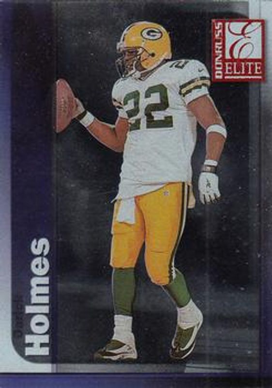 The Darick Holmes 1999 Donruss Elite #072 Base card is 1 of 3 Darick Holmes' card variations in the 1999 Donruss Elite set being tracked by Sports Card Investor, including Aspirations /72, and Status /28.