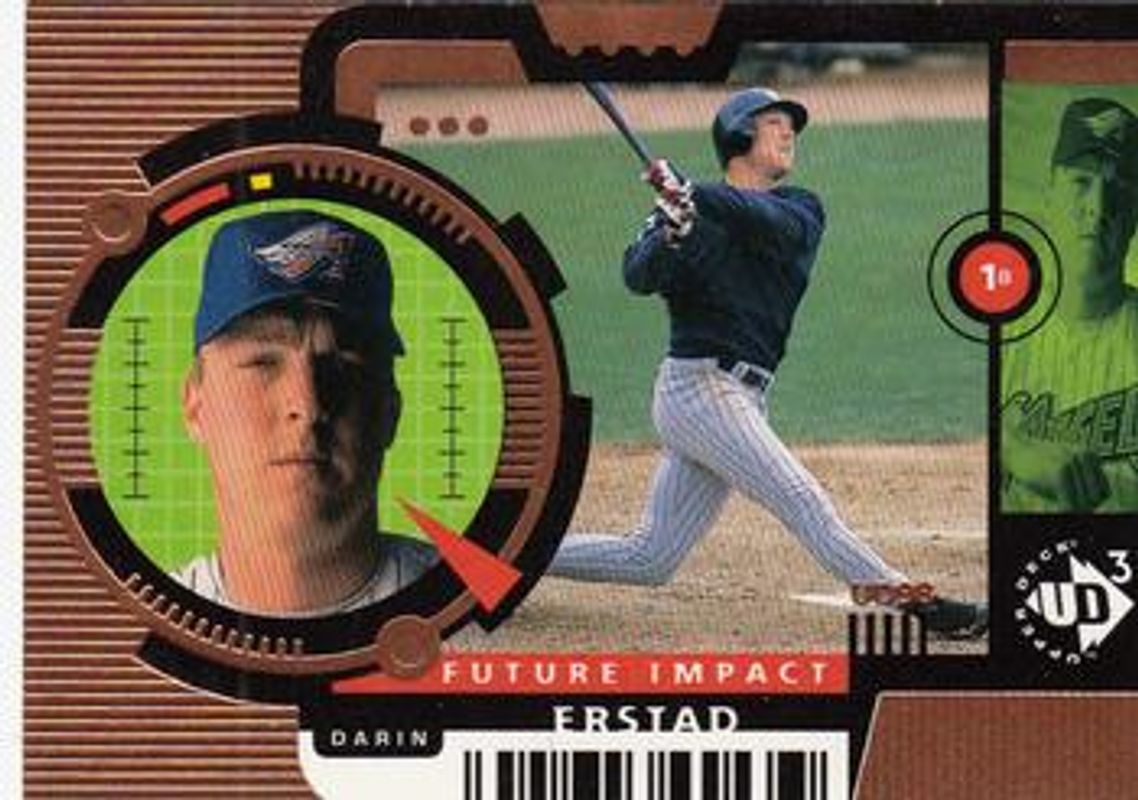 The Darin Erstad 1998 Upper Deck UD3 #98 Base card is 1 of 6 Darin Erstad's card variations in the 1998 Upper Deck UD3 set being tracked by Sports Card Investor, including #188 Base, #8 Base, #188 Die-Cut /100, #8 Die-Cut /100, and #98 Die-Cut /100.