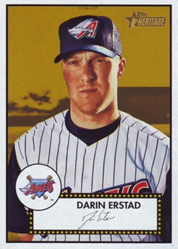 The Darin Erstad 2001 Topps Heritage #58b Base card is 1 of 3 Darin Erstad's card variations in the 2001 Topps Heritage set being tracked by Sports Card Investor, including Base, and Chrome /552.