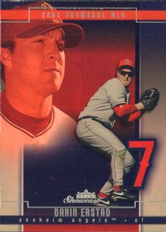 The Darin Erstad 2004 Fleer Showcase #12 Base card is 1 of 3 Darin Erstad's card variations in the 2004 Fleer Showcase set being tracked by Sports Card Investor, including Legacy Collection /99, and Masterpiece Collection /1.