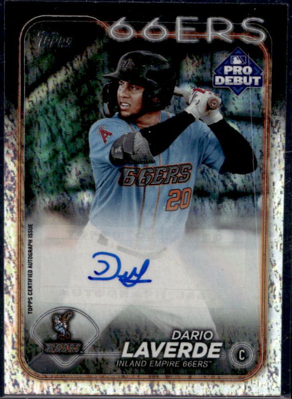 The Dario Laverde 2024 Topps Pro Debut #PD-38 Base Autographs - Sparkle Foil /199 card is 1 of 37 Dario Laverde's card variations in the 2024 Topps Pro Debut set being tracked by Sports Card Investor, including Base, Fuchsia Foil /199, Sparkle Foil /175, Blue Foil /150, and Green Foil /99.