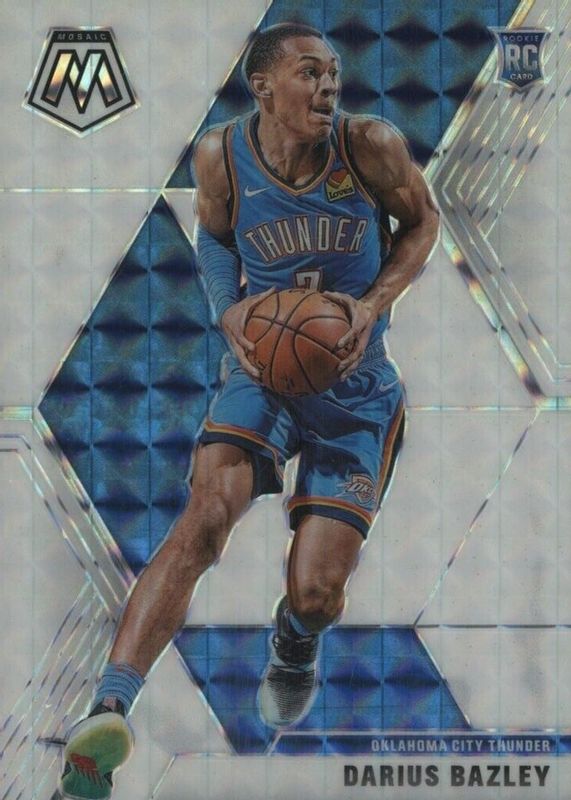 This card is 1 of 33 Darius Bazley's card variations in the 2019 Mosaic set being tracked by Sports Card Investor, including Base, Fast Break, Green, Pink Camo, and Reactive Blue.