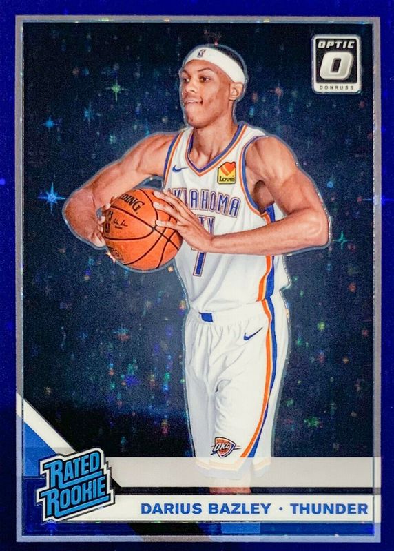 This card is 1 of 34 Darius Bazley's card variations in the 2019 Optic set being tracked by Sports Card Investor, including Base, Blue Velocity, Checkerboard, Choice, and Choice Red & Green.