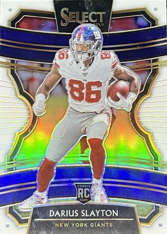 This card is 1 of 19 Darius Slayton's card variations in the 2019 Select set being tracked by Sports Card Investor, including Concourse, Concourse Silver, Concourse Tri-Color /199, Concourse Blue /175, and Concourse Maroon /149.