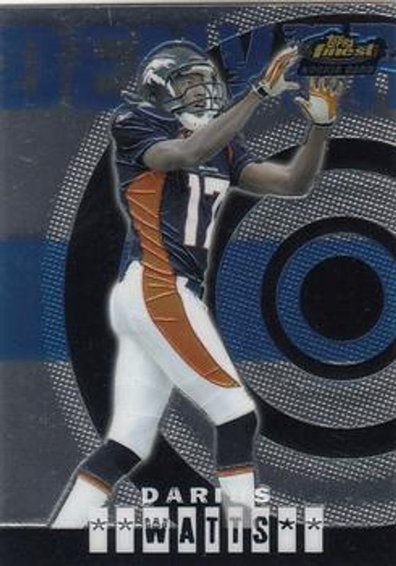 The Darius Watts 2004 Topps Finest #95 Base /399 Rookie card is 1 of 9 Darius Watts' card variations in the 2004 Topps Finest set being tracked by Sports Card Investor, including Refractors /199, Uncirculated Gold X-Fractors /150, Gold Refractor /50, X-Fractor /5, and Printing Plate Black /1.