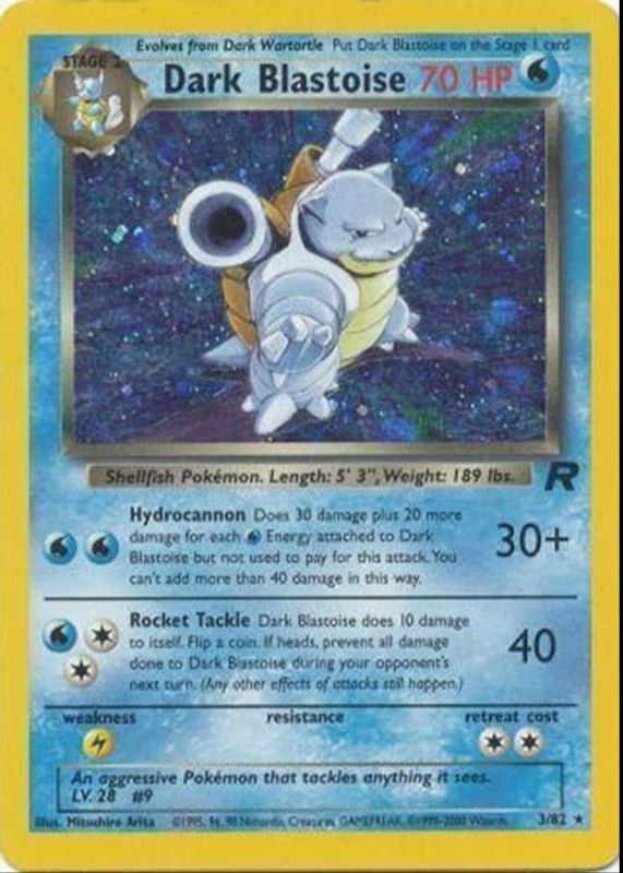 The Dark Blastoise 2000 Team Rocket #03/82 Unlimited Holo card in Raw TCG (Near Mint) condition has moved up $84.11 (+128%) in the last 30 days and was last sold for $150.00 .