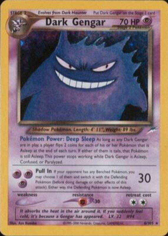 The Dark Gengar 2002 Neo Destiny #6/105 Holo card in Raw TCG (Heavily Played) condition has not changed in price in the last 30 days.