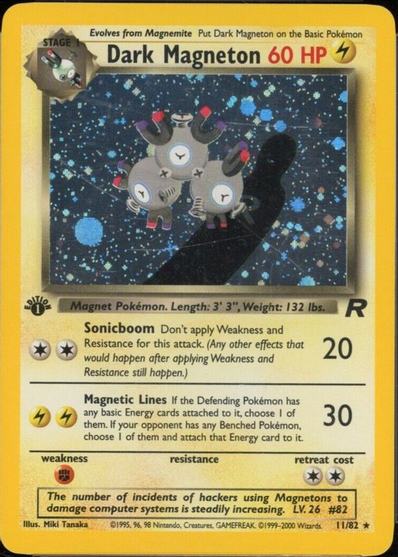 2000 Pokemon TCG Team Rocket 1st Edition 11/82 Dark Magneton Holo BIG SWIRL NM