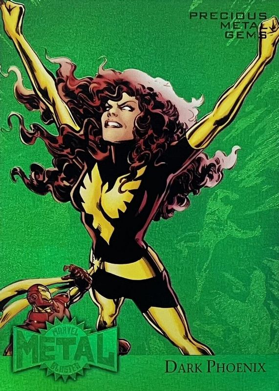 The Dark Phoenix 2015 Fleer Retro #9 Precious Metal Gems Green /10 card in Raw condition has not changed in price in the last 30 days and was last sold for $2,247.00 .
