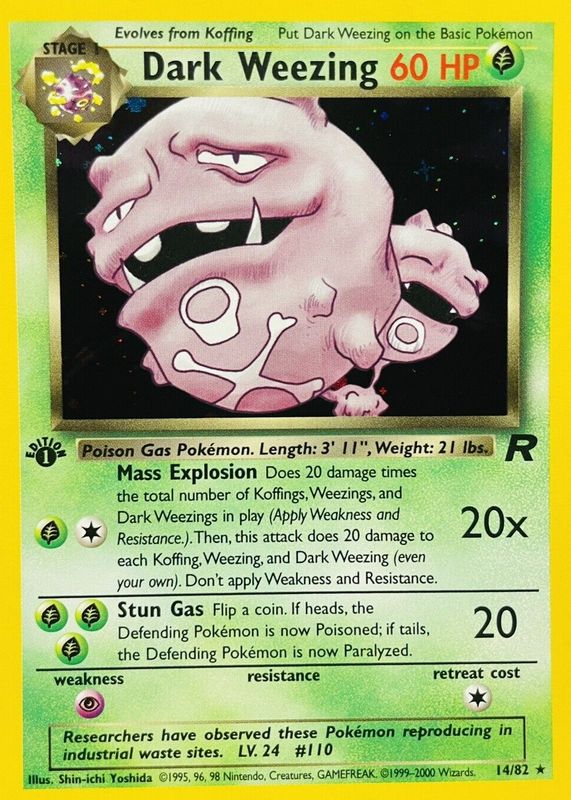 Pokemon Team Rocket Dark Weezing 14/82 - NM 1st Edition Holo WOTC