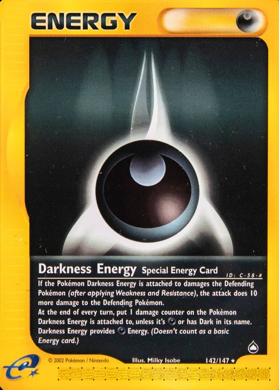 The Darkness Energy 2003 Aquapolis #142/147 Base card in Raw TCG (Near Mint) condition has not changed in price in the last 30 days and was last sold for $11.76 .