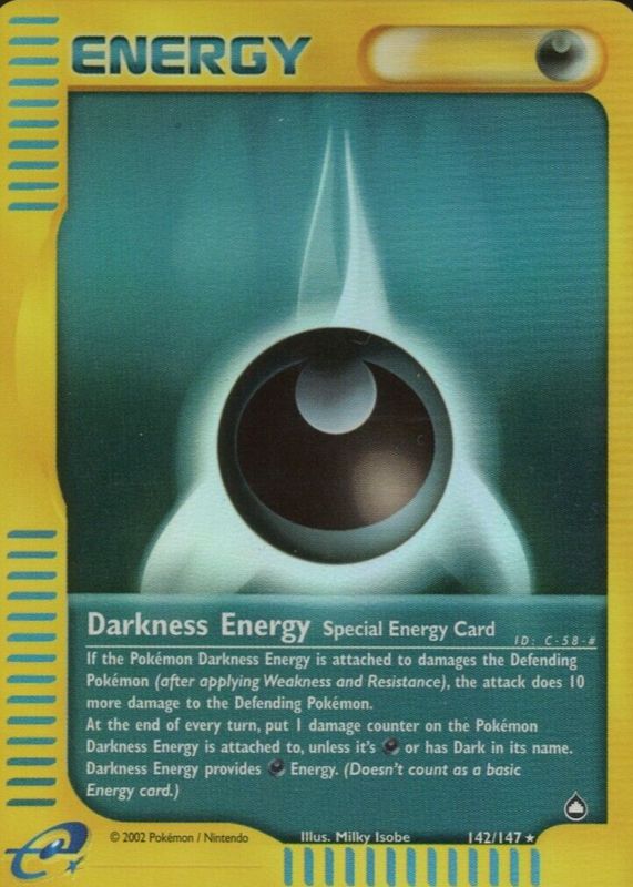 The Darkness Energy 2003 Aquapolis #142/147 Reverse Holo card in Raw TCG (Near Mint) condition has moved up $5.05 (+72.7%) in the last 30 days and was last sold for $12.00 .