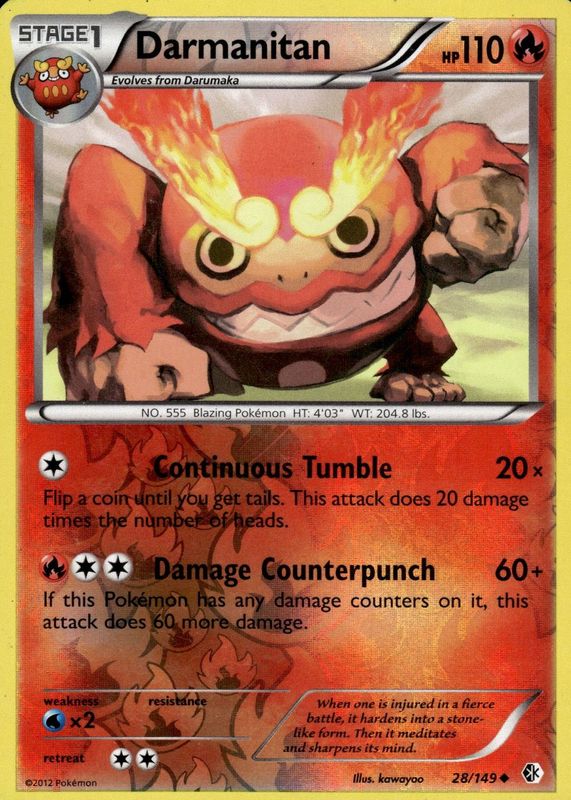 Darmanitan 2012 Black & White: Boundaries Crossed #028/149 Reverse Holo RAW TCG (NEAR MINT) Price Guide