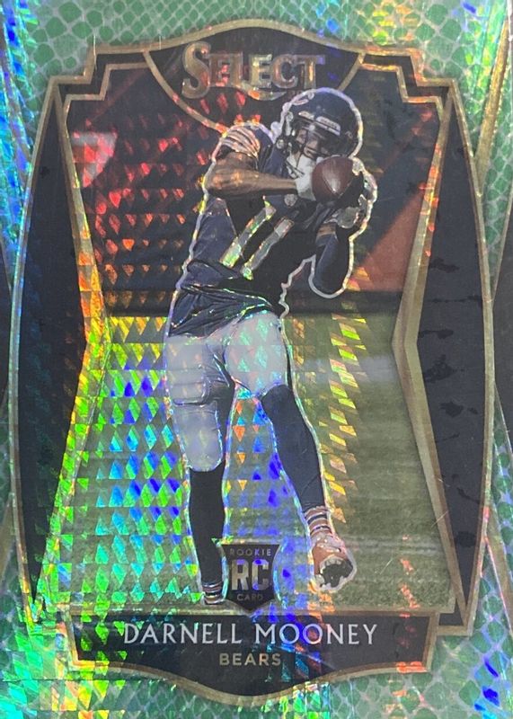 Darnell Mooney's Football cards are available in at least 6 sets. Darnell Mooney's biggest 7-day price movers are 2020 Select #200 Premier Level Tmall Dragon Scale /67, 2020 Select #200 Premier Level Green & Black Snakeskin /2, and 2020 Contenders #204 Rookie Ticket Auto Variation - Red Zone Ticket.