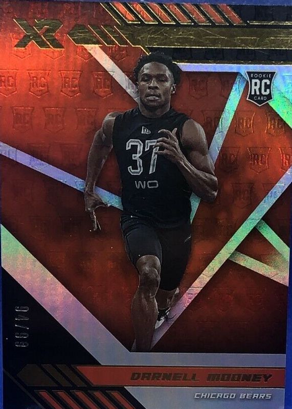 This card is 1 of 10 Darnell Mooney's card variations in the 2020 XR set being tracked by Sports Card Investor, including Base, Red /249, Blue /199, White /75, and Teal /49.