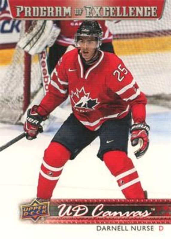 The Darnell Nurse 2014 Upper Deck #C269 UD Canvas Rookie card is 1 of 17 Darnell Nurse's card variations in the 2014 Upper Deck set being tracked by Sports Card Investor, including Young Guns Base, Young Guns Canvas, Young Guns - Acetate, Young Guns - UD Exclusives /100, and Young Guns - UD High Gloss /10.