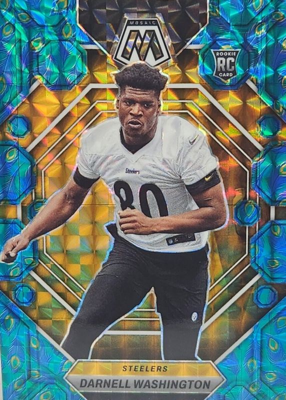 The Darnell Washington 2023 Mosaic #306 Choice Peacock /(SSP) Rookie card in Raw condition has not changed in price in the last 30 days and was last sold for $55.50 .