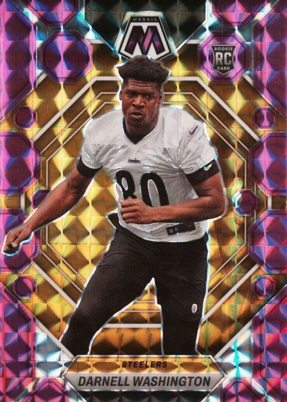 This card is 1 of 40 Darnell Washington's card variations in the 2023 Mosaic set being tracked by Sports Card Investor, including Base, Choice Red & Green, Green, No Huddle, and Pink Camo.