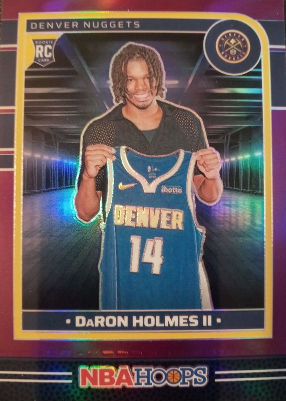 The DaRon Holmes II 2024 Hoops #252 Premium Purple /249 Rookie card in Raw condition has not changed in price in the last 30 days and was last sold for $0.99 .