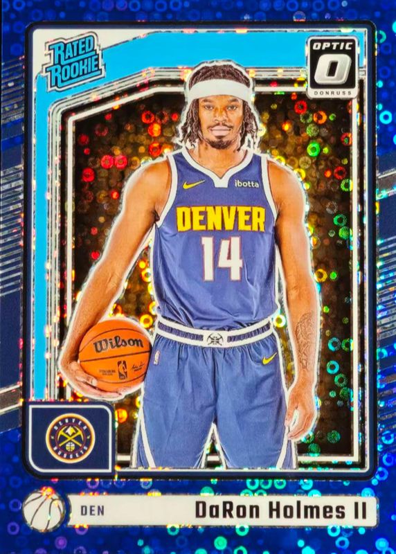 This card is 1 of 103 DaRon Holmes II's card variations in the 2024 Optic set being tracked by Sports Card Investor, including Base, Blue Velocity, Checkerboard, Choice, and Fast Break.
