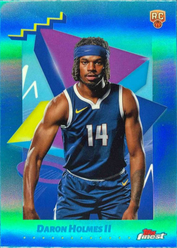 The DaRon Holmes II 2024 Topps Finest #123 Base Uncommon - Sky Blue Refractor Rookie card is 1 of 117 DaRon Holmes II's card variations in the 2024 Topps Finest set being tracked by Sports Card Investor, including Arrivals, Arrivals - Geometric Refractor, Arrivals - Refractor, Arrivals - X-Fractor, and Base Rare.