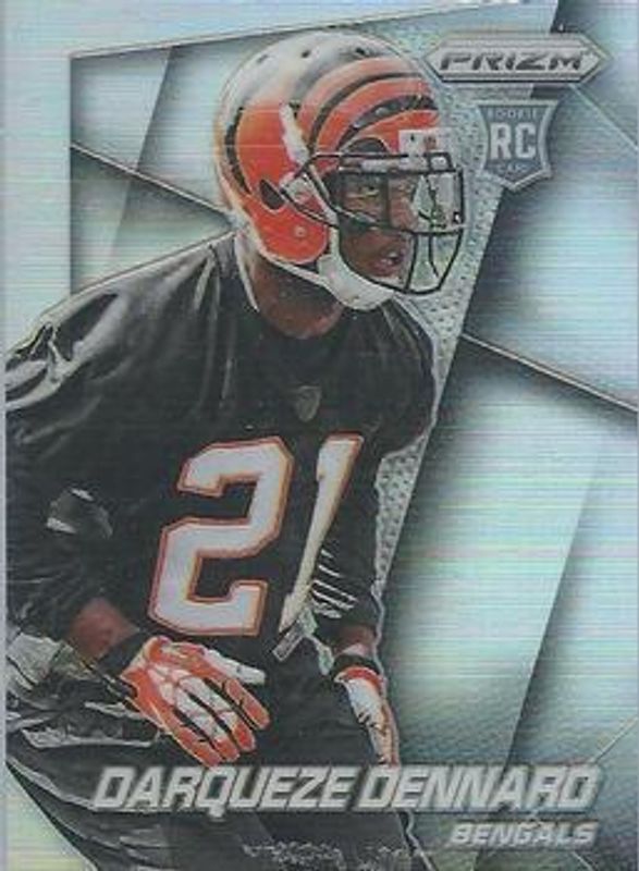 The Darqueze Dennard 2014 Prizm #276 Silver Rookie card is 1 of 38 Darqueze Dennard's card variations in the 2014 Prizm set being tracked by Sports Card Investor, including Base, Blue, Camo, Green, and Neon Green & Yellow.