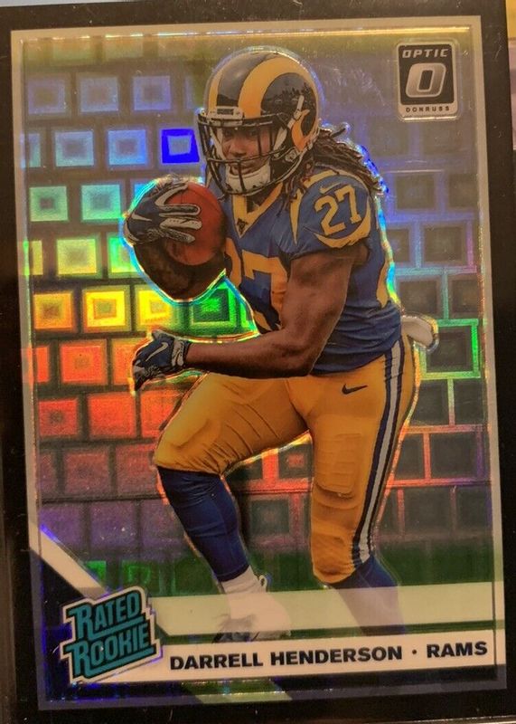This card is 1 of 18 Darrell Henderson's card variations in the 2019 Optic set being tracked by Sports Card Investor, including Base, Bronze, Green Velocity, Holo, and Pink.